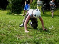 Dále spadají do kategorie sportovišť i dvě naše malé stěny, na kterých není potřeba se jistit lanem. Jednou je bouldrovka, která imituje pískovcové skály a kde se můžou i děti pohybovat bez dozoru dospělého (samozřejmě je lepší, když zde s nimi někdo je). Ná boudrovce se vyřádí všichni, protože je zde dost chytů na to, aby ji přelezl úplně každý.